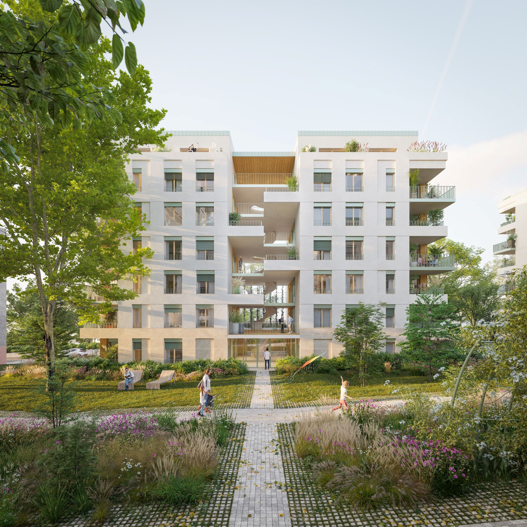 D’inspiration contemporaine, l’architecture de la résidence s’intègre naturellement à son cadre paysager. Les bâtiments, aux lignes sobres et élégantes jouent sur la verticalité et la régularité des volumes, et permettent de dégager de vastes cœurs d’îlot arborés et conviviaux. Chaque logement bénéficie de généreux espaces extérieurs conçus comme de véritables pièces de vie.