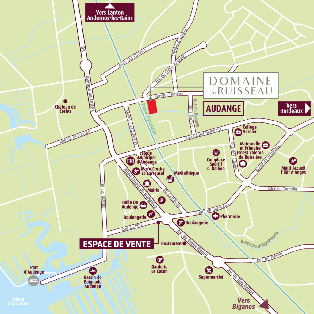 Le programme immobilier neuf Domaine du Ruisseau vous propose une adresse de prédilection pour investir ou acquérir une résidence secondaire à Audenge sur le bassin d'Arcachon. Cette commune est plébiscitée pour sa localisation à proximité d'Andernos-les-Bains et sa facilité d'accès à l'ouest bordelais. Ce programme RE 2020 propose une majorité d'intérieurs à double orientation.Nous vous proposons des appartements en vente sous le dispositif du Bail Réel Solidaire (BRS), une solution innovante pour faciliter l'accès à la propriété. Grâce au BRS, vous achetez uniquement le bâti (votre logement), tandis que le terrain est mis à disposition par un organisme public ou une société coopérative via un bail de longue durée (99 ans). Cette dissociation permet de réduire le coût d'achat global de votre bien, rendant l'accession à la propriété plus accessible, notamment dans les zones où les prix sont élevés. Le BRS vous offre ainsi l'opportunité de devenir propriétaire à des conditions avantageuses, tout en contribuant à la gestion durable du foncier.