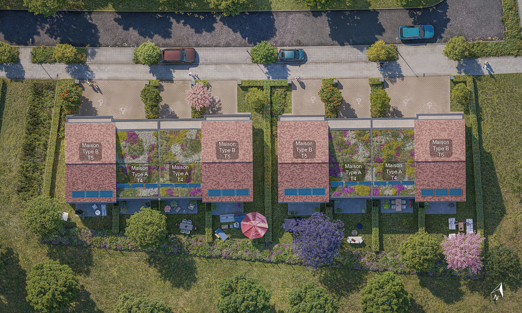 Et à quelques pas, 8 maisons neuves de 4 et 5 pièces, spécialement conçues pour les familles :